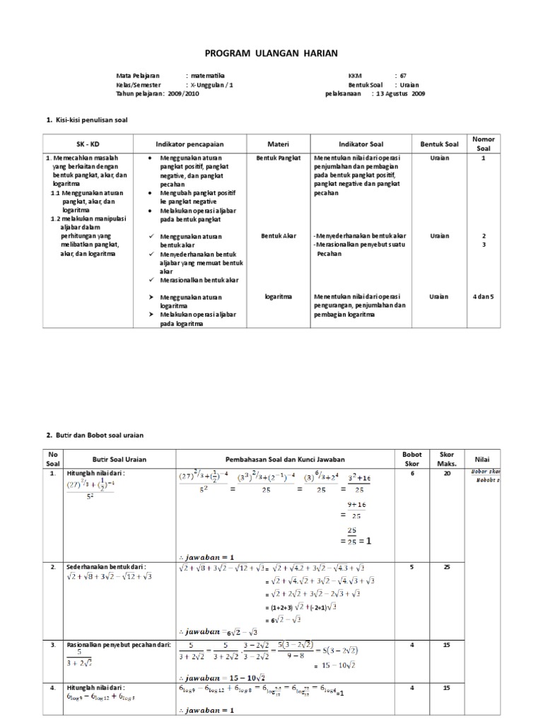 Contoh Latihan Soal: Soal Uas Matematika Wajib Kelas X ...